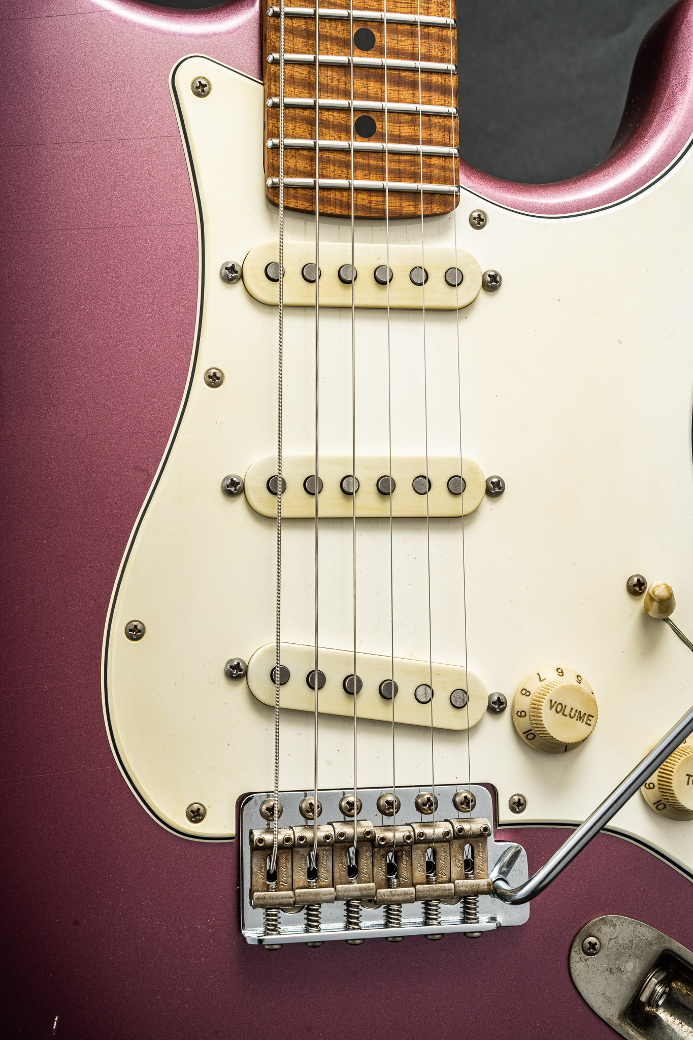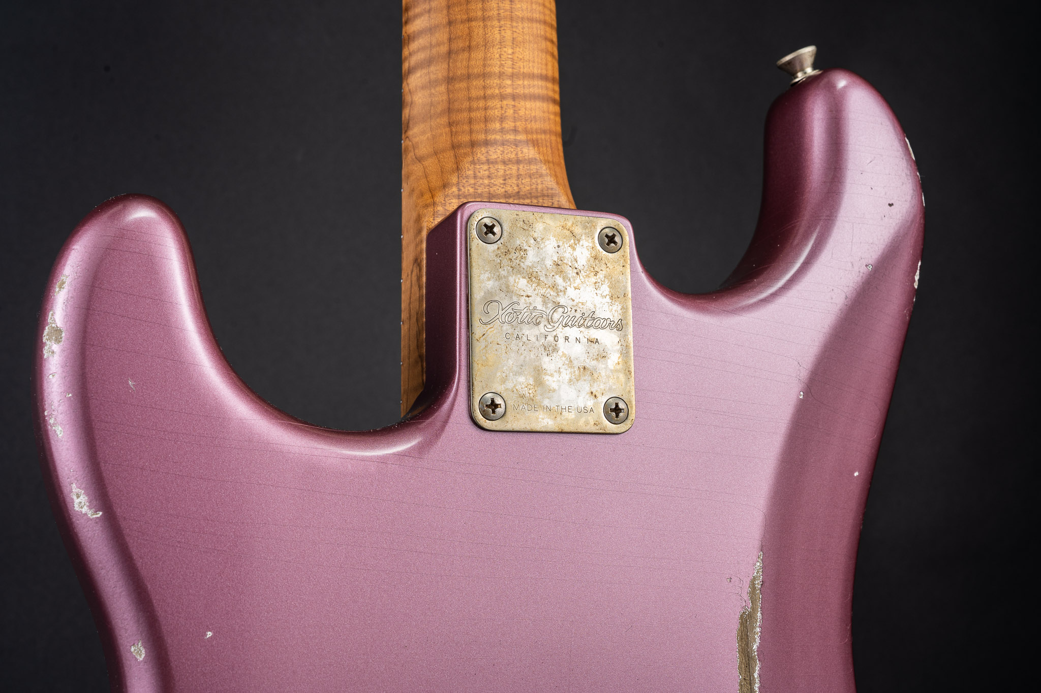 Gallery Guitar List XSC-1 Burgundy Mist #3055 Specs Body Wood: AlderAging: MediumNeck: Master Grade Roasted Flame Maple neck and fingerboard